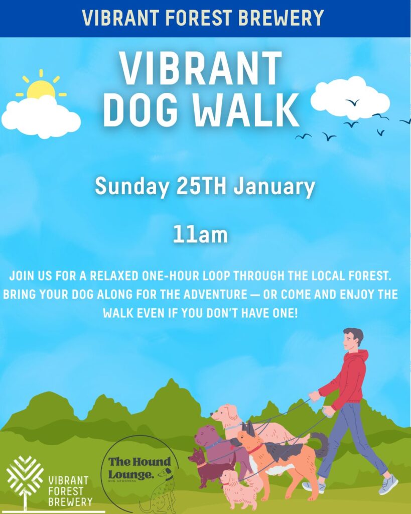 Join us on Sunday for our community dog walk! We’ll set off from the brewery for a gentle hour-long loop through the New Forest, then head back for beers, food, and good company.