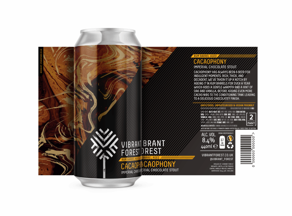 Cacaophony has always been a beer for indulgent moments. Rich, thick, and decadent, we've taken it up a notch by ageing it in Rum barrels for over a year which adds a gentle warmth and a hint of oak and vanilla, before adding even more cacao nibs to the conditioning tank leading to a delicious chocolatey finish.